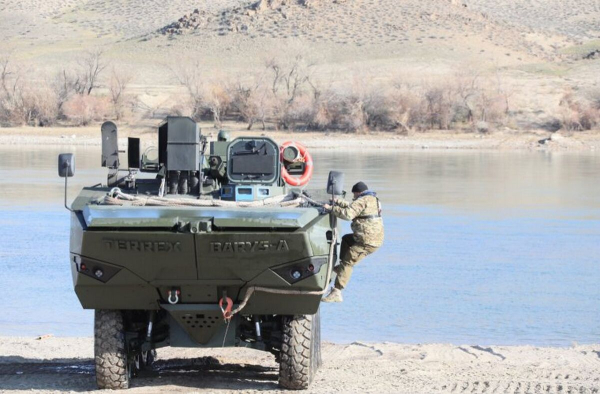 Terrex — Barys A был впервые представлен силовым структурам страны на реке Или в ноябре этого года. Машина разработана в сотрудничестве компаний KPE и WSE, входящих в группу Barys Dynamics.