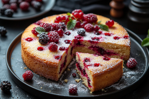 Нежное воздушное тесто, пропитанное ягодным соком, и кисло-сладкие ягоды внутри создают идеальное сочетание. Готовится за 10 минут, а выпекается за 30 — никакой возни с раскаткой и замесом.