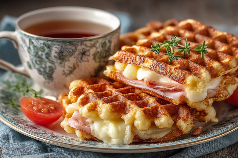 Рецепт: в миске разомните творог вилкой, добавьте яйца, соль, муку и тщательно перемешайте до однородной массы. Тесто должно быть как густая сметана. Ветчину и помидор нарежьте тонкими ломтиками, сыр натрите на крупной терке. Разогрейте вафельницу, слегка смажьте её поверхности растительным маслом. На нижнюю половину формы выложите столовую ложку теста, равномерно распределяя. Сверху положите ломтик ветчины, кружочек помидора, посыпьте сыром и зеленью. Закройте начинку ещё одной ложкой теста, аккуратно размазывая, чтобы она полностью покрыла начинку. Закройте вафельницу и запекайте 4-6 минут до румяной, хрустящей корочки.