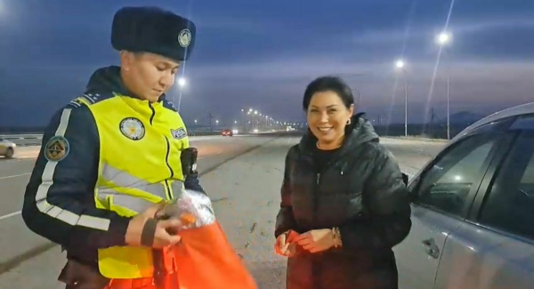 На трассе Караганда — Астана, недалеко от Темиртау, полицейские провели необычный рейд. Вместо нервных разбирательств и штрафов сотрудники батальона патрульной полиции награждали тех, кто за весь год не допустил ни одного нарушения ПДД.