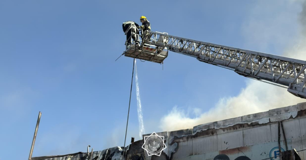 Тушение осложняется особенностями строения здания, высокой пожарной нагрузкой и сильным задымлением.