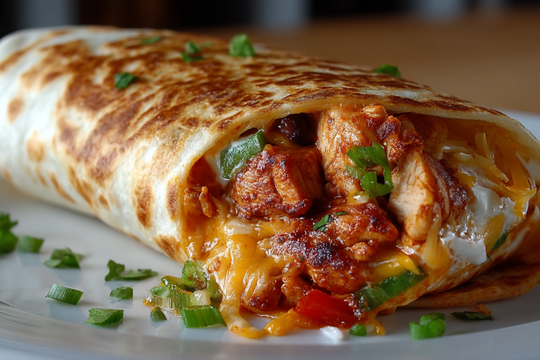 Получается обалденная вкуснятина: мягкая тортилья, а внутри — сочная курица с луком и перцем, нежная фасоль, расплавленный сыр и ароматные специи.